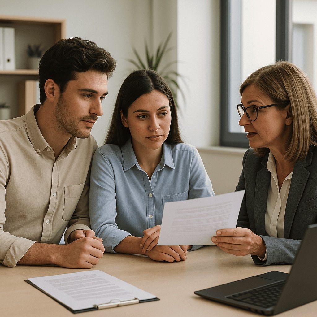 Alt text: First time home buyers in Utah discussing FHA programs and down payment assistance with a mortgage advisor