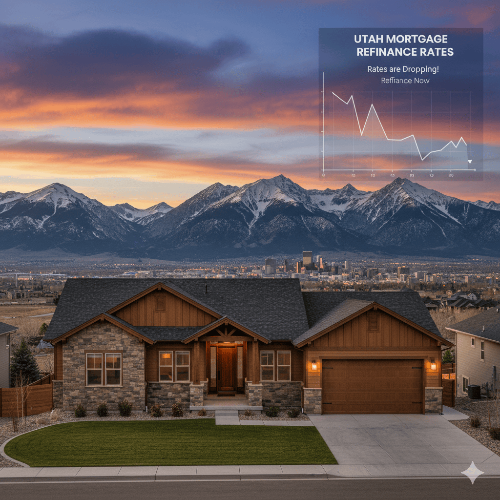 Alt tag: Home in Utah with refinance rates chart overlay – Utah mortgage refinance rates